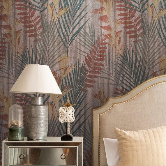 Textured Wallpaper Copper Metallic Modern Floral Tropical Palm Etsy