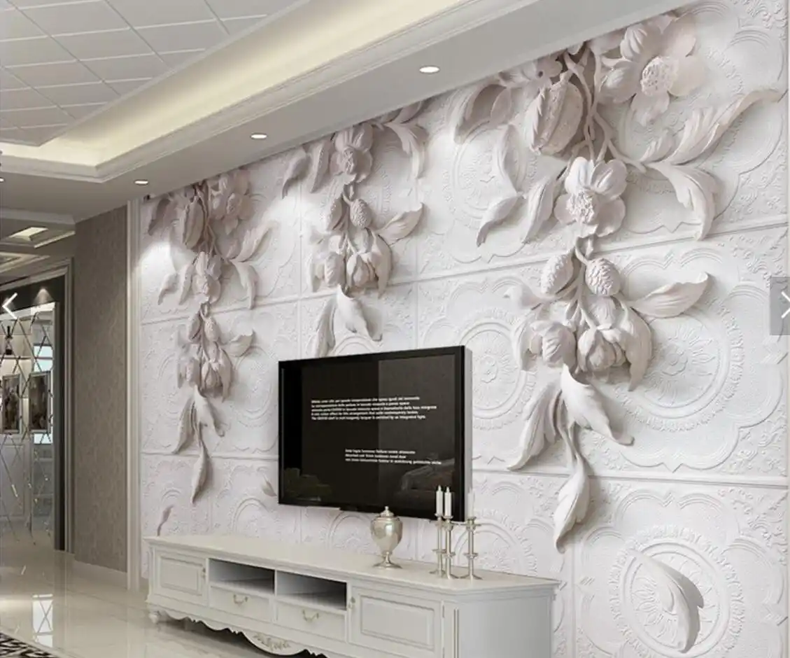 Large European Embossed 3d Flower Printing Wallpapers For Living