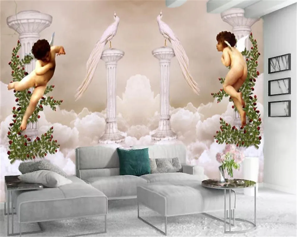 Wholesale 3d Wallpaper Lucky Bird Roman Column Angel Custom 3d