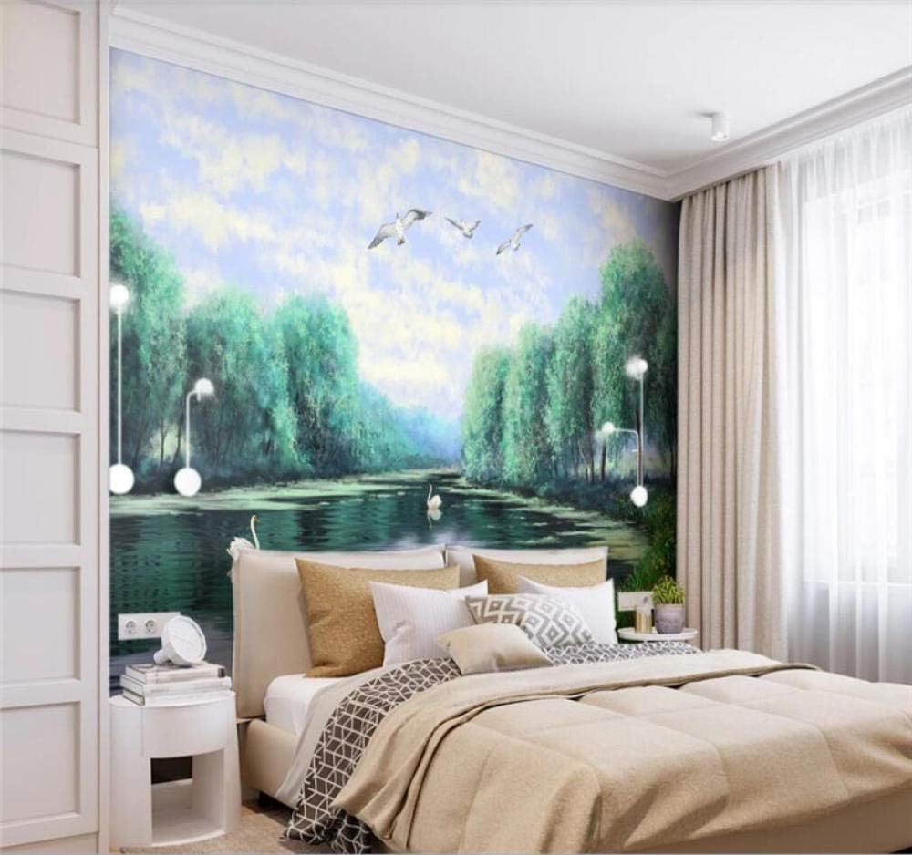 Zrisic Wallpaper Custom Nordic Forest Swan Muarl Kids Room Bedroom