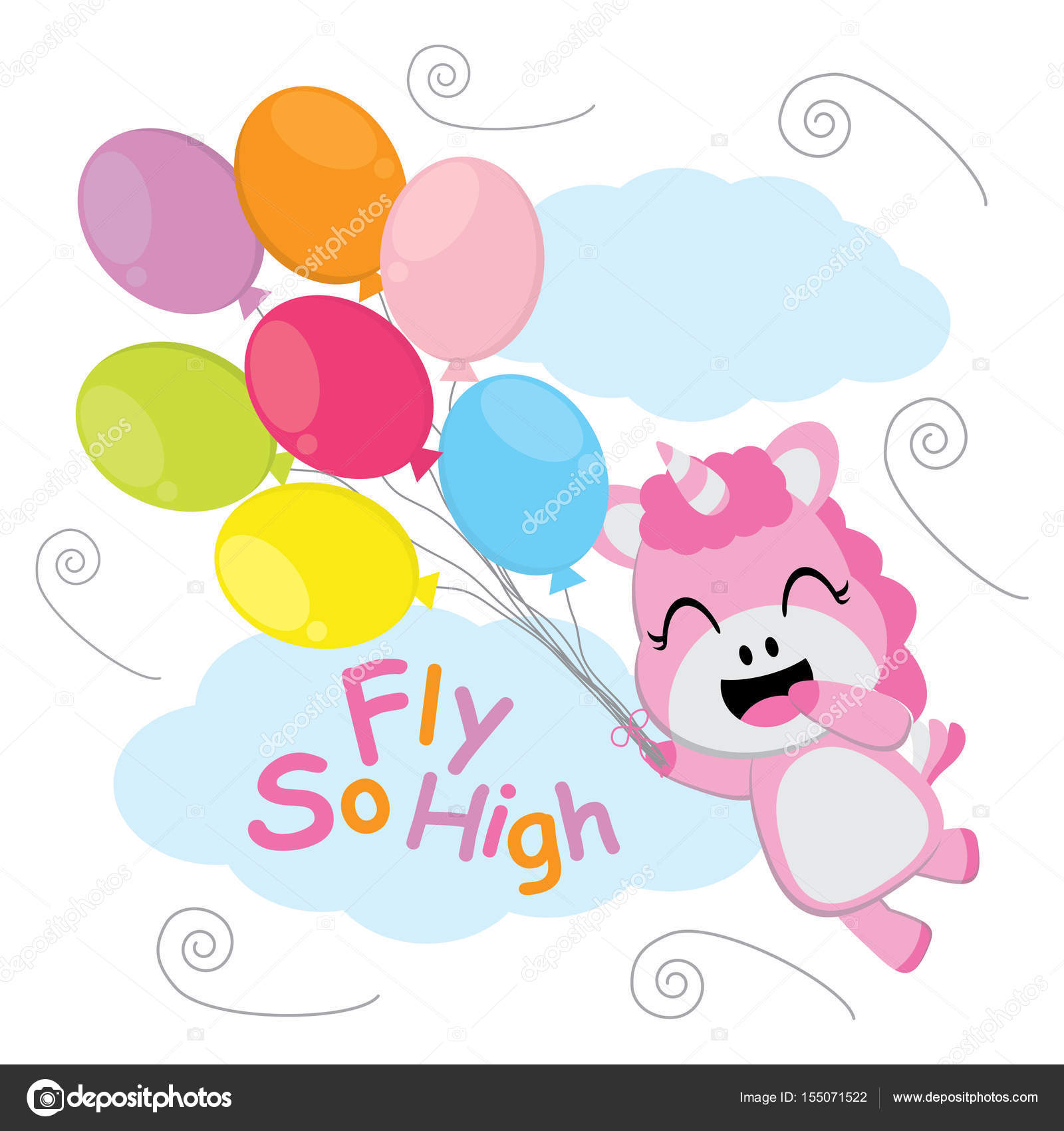 Flies Wallpaper Cute Unicorn Flies With Colorful Balloons Vector