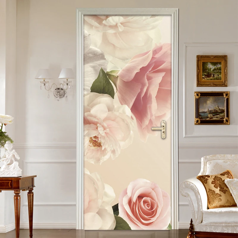 2pcs Set 3d Flower Floral Door Stickers Pvc Self Adhesive