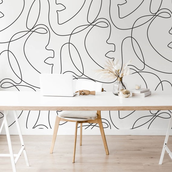 Line Art Minimal Design Removable Wallpaper Wall Mural Art Etsy