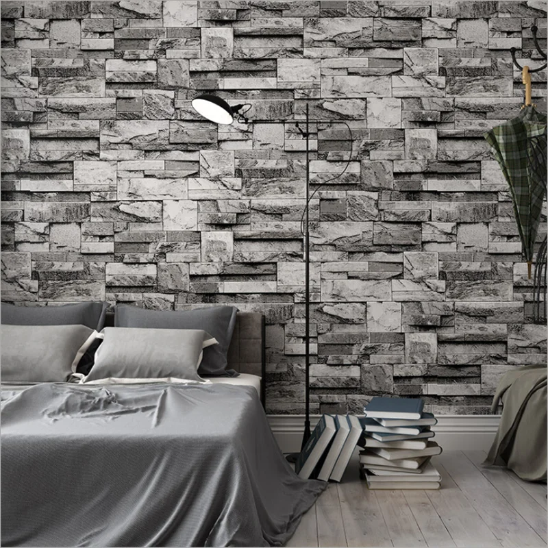 Brick 3d Stone Wallpaper Roll Pvc Vinyl Wall Paper Grey Brick