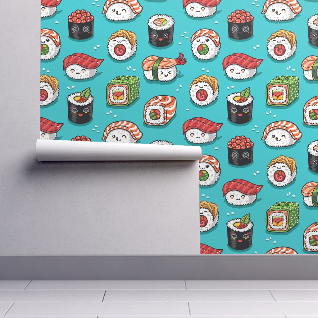 Removable Water Activated Wallpaper Kawaii Sushi Food Japanese