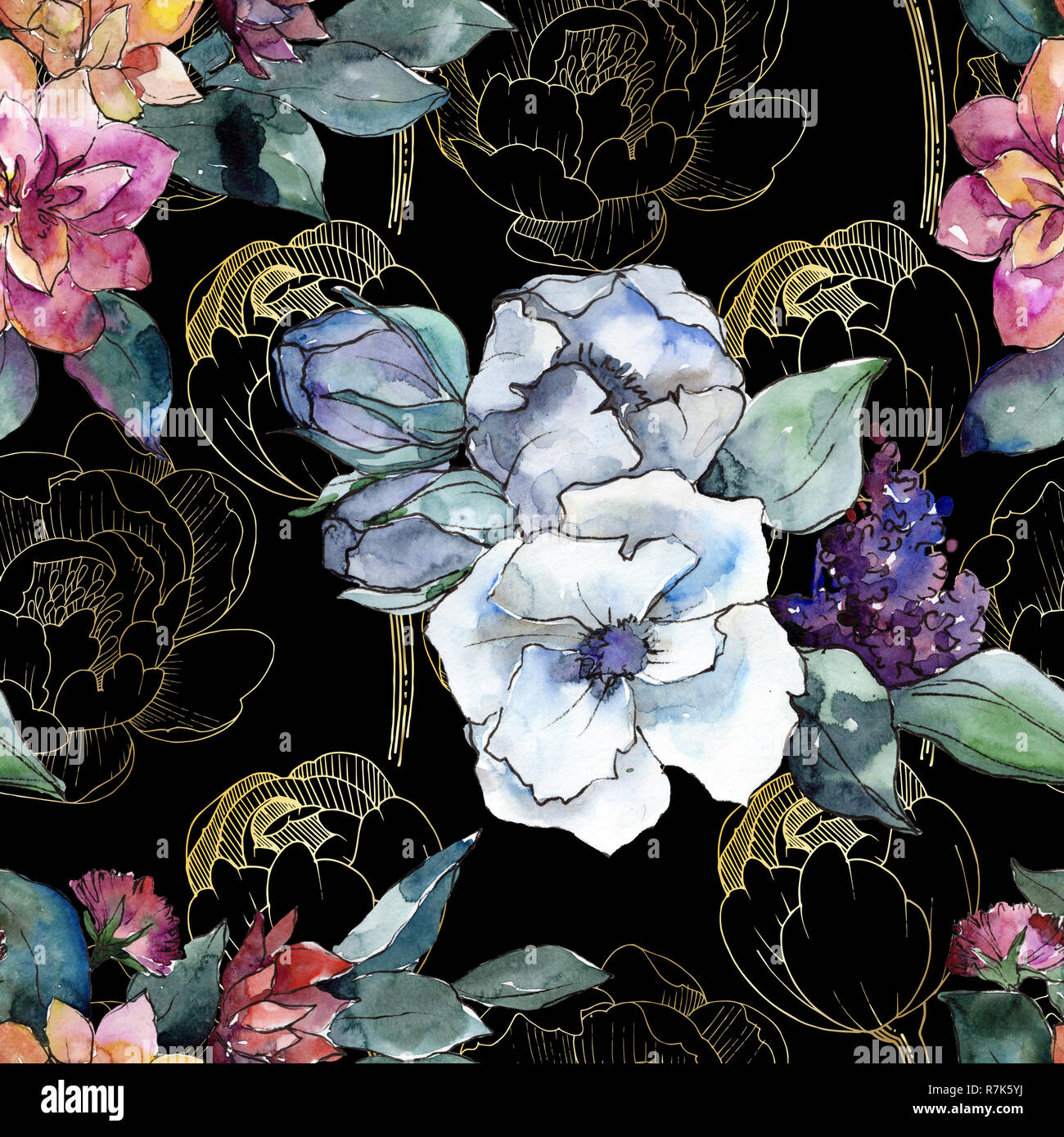 Spring Flowers Seamless Pattern Watercolor Floral Background For