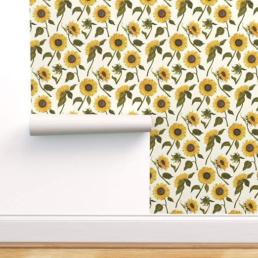 Spoonflower Non Pasted Wallpaper Sunflowers Cottage Chic Yellow