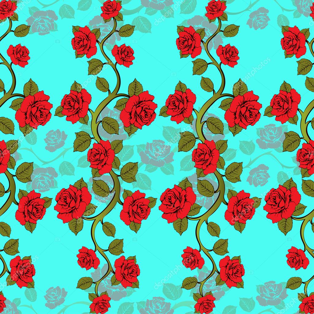 Seamless Floral Pattern With Roses Branches Floral Print Bright