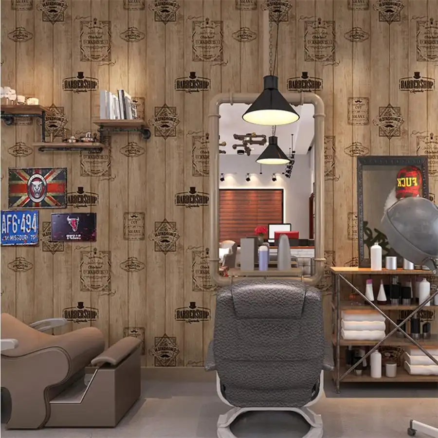 Beibehang New 3d Retro Letter Wood Grain Wallpaper Barber Shop Special Hair Salon Wood Imitation Wood Waterproof Pvc Wallpaper Papel De Parede De Paredeimitation Wood Aliexpress