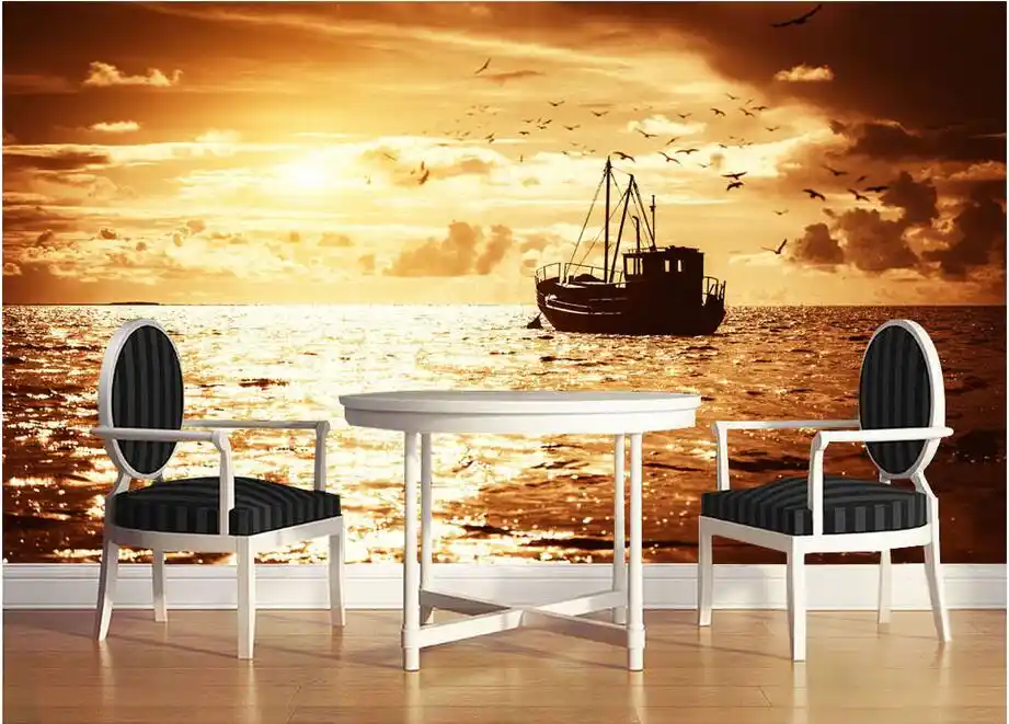3d Wallpaper Custom Photo Non Woven Setting Sun Fishing Boats 3d Wall Murals Wallpaper For Walls 3 D Room Decoration Painting Wallpaper Moon Wallpaper Specializedboat