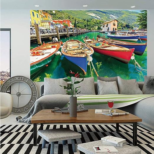 Amazon Com Sosung Italy Wall Mural Summer Landscape And Wooden Boats On The Lake Garda Torbole Town Fishing Maritime Decorative Self Adhesive Large Wallpaper For