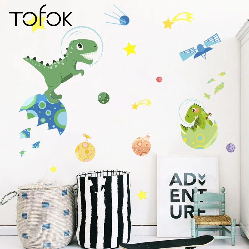 Tofok Cartoon Planet Dinosaur Wall Sticker Diy Baby Kids Room Doll