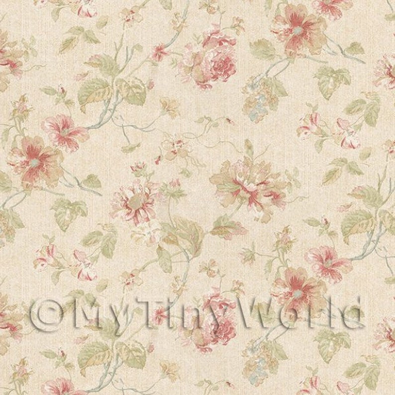 Dolls House Miniature Pale Red Mixed Flower Design Wallpaper Etsy