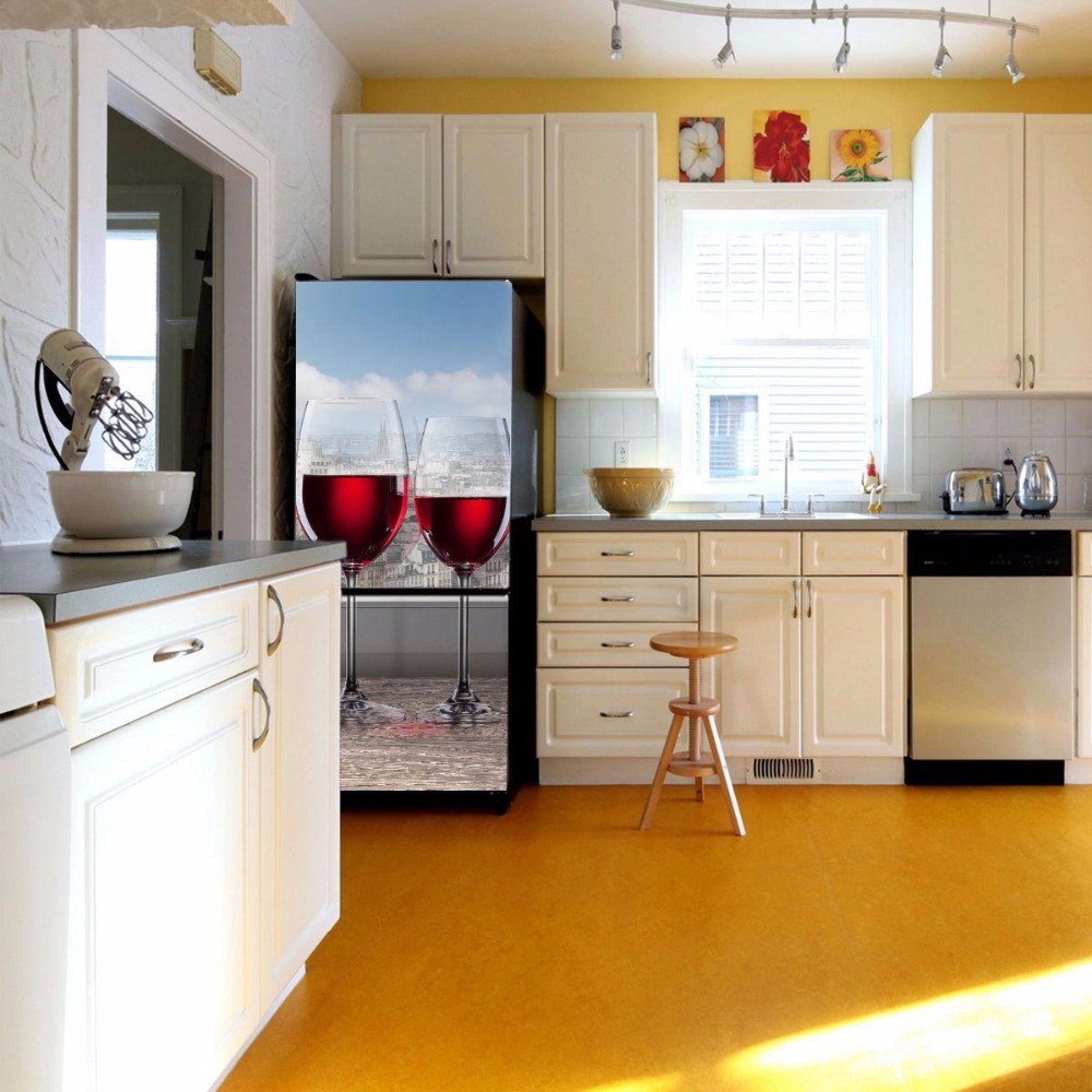 3d Creative Romantic Wine Refrigerator Sticker Fridge Door Cover