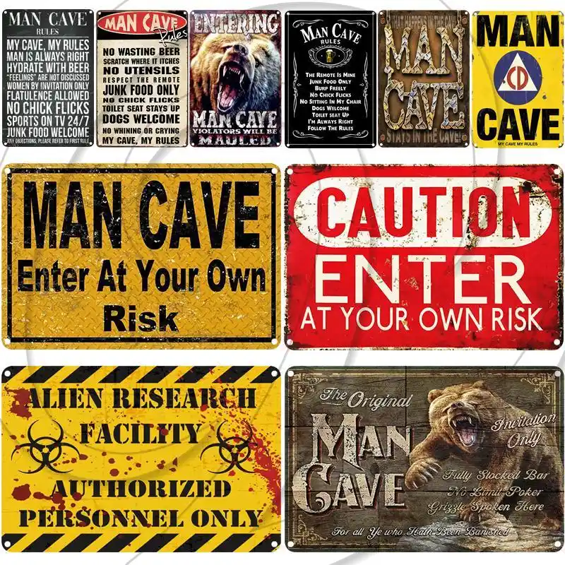 Beware Man Cave Women Cave Slogan Retro Plates Wallpaper Sticker Bar Hotel Cafe Decor Art Painting Aliexpress