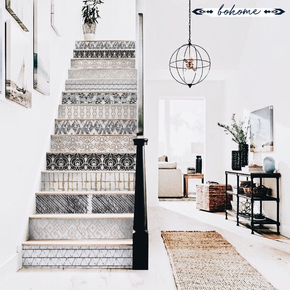 Stairs Decal Stair Riser Removable Wallpaper Boho Stickers Etsy