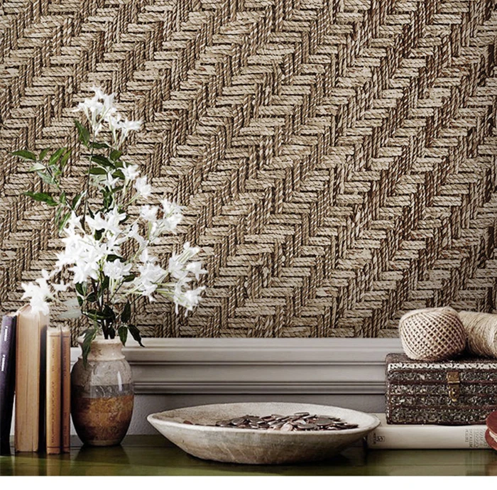 Faux Linen Textured Wallpaper For Walls Decor Straw Pattern Vinyl