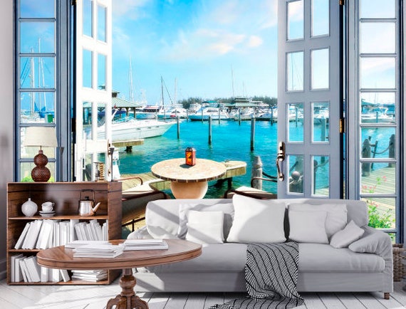 3d Window Yachts Wallpaper Wall Sticker Wall Decor Peel And Etsy