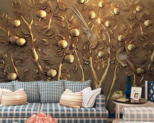 Amazon Com Nidezuiai Mural Customize 4d Wallpaper Golden Embossed