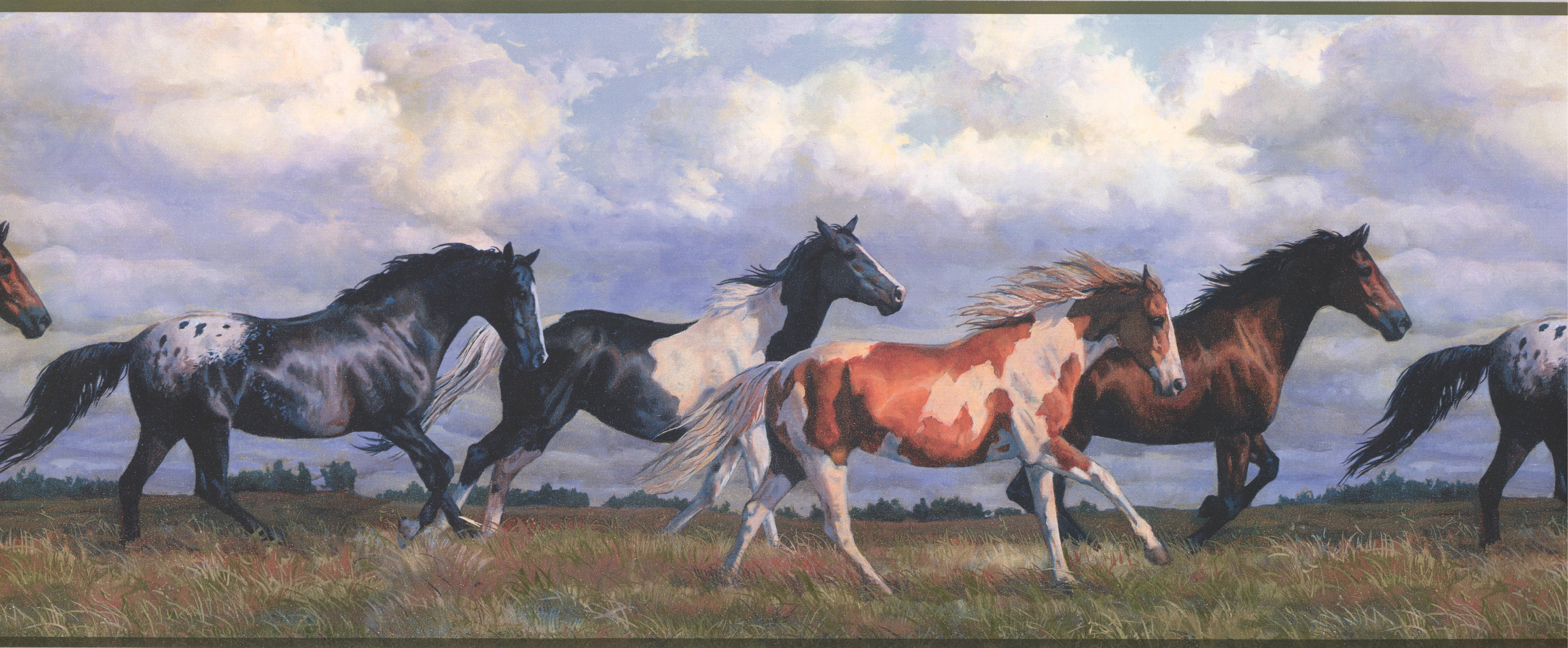 Wallpaper Border Horses Running Wild Blue Sky Wall Border Retro