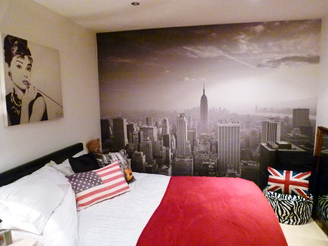 New York City Wallpaper In A Modern Bedroom Contemporary