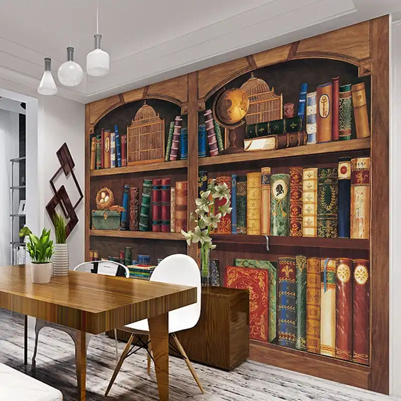 Custom Wallpaper European Style Retro Bookshelf Wooden Frame