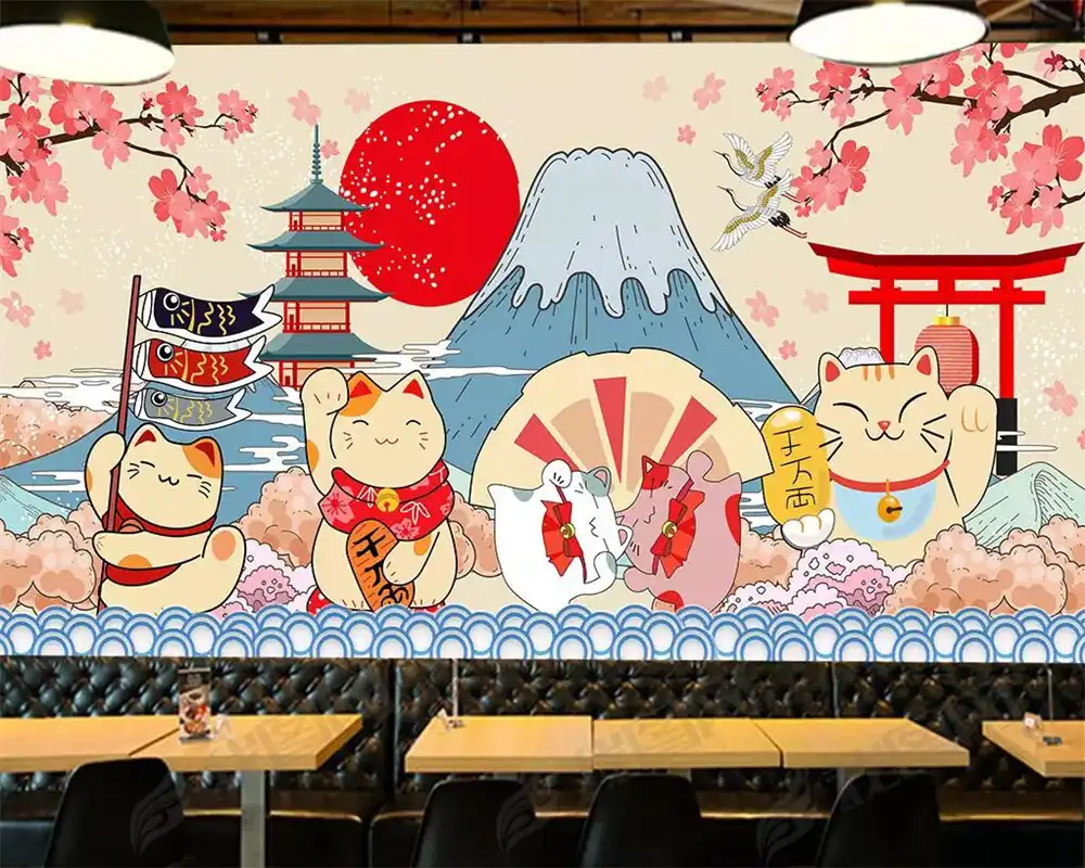 Japanese Style Wind Lucky Cat Ramen Snack Sushi Restaurant