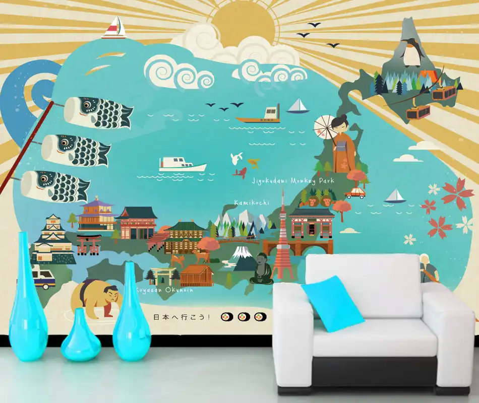 Japanese Style Wallpaper Travel Map Photo Natural Mural For