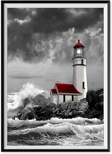 Amazon Com 5d Diamond Painting Rhinestone Wave Lighthouse Cabin