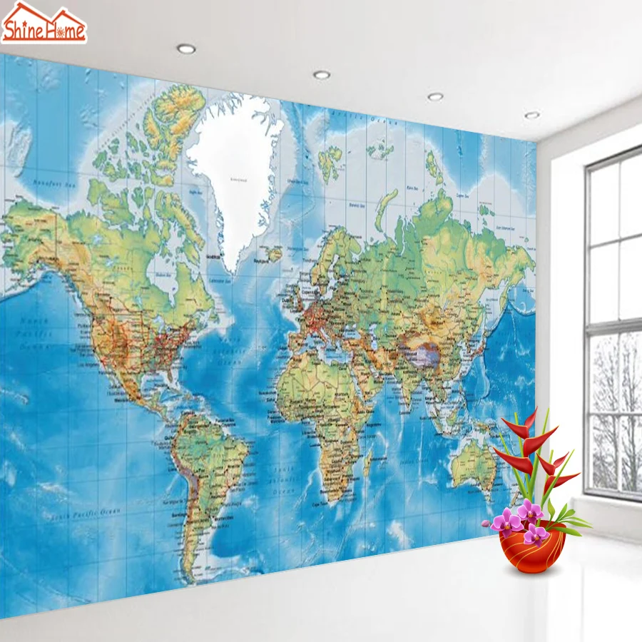 World Map Wallpaper Custom Printed Map Wall Murals Wallpapered