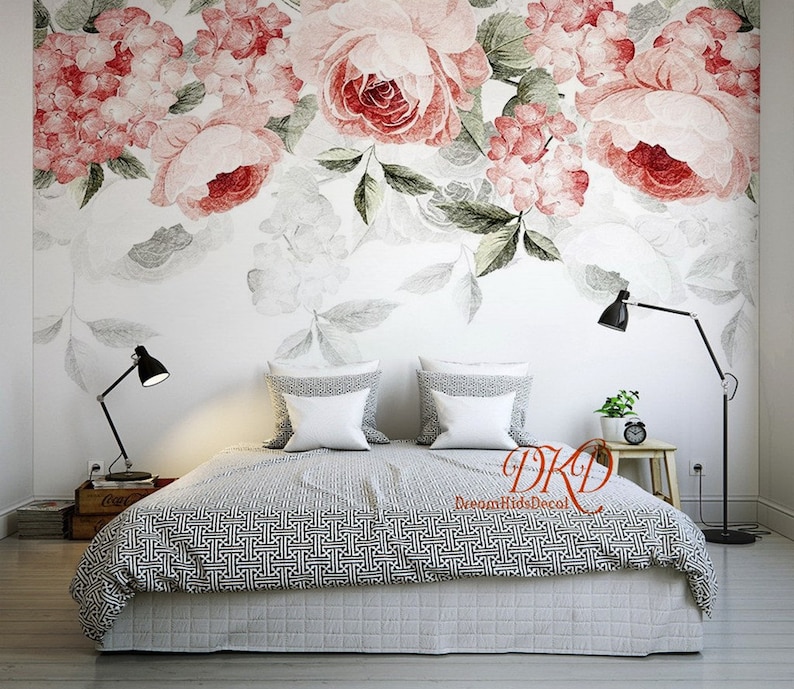 Watercolor Wall Mural Floral Mural Watercolor Rose Flower Etsy