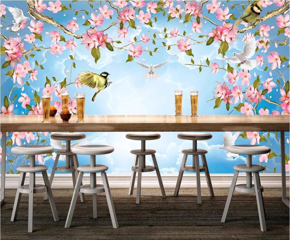 3d Wallpaper Custom Mural Flowers And Birds Sky Clouds Painting 3d