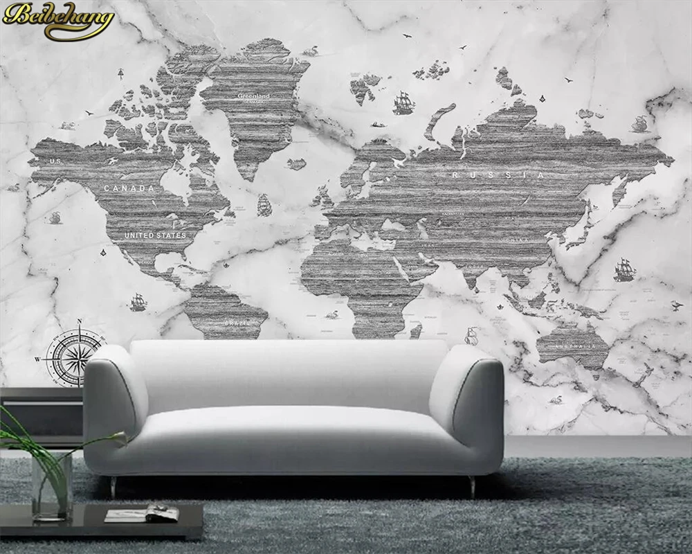 Beibehang Custom Photo Wallpaper Mural World Map White Marble