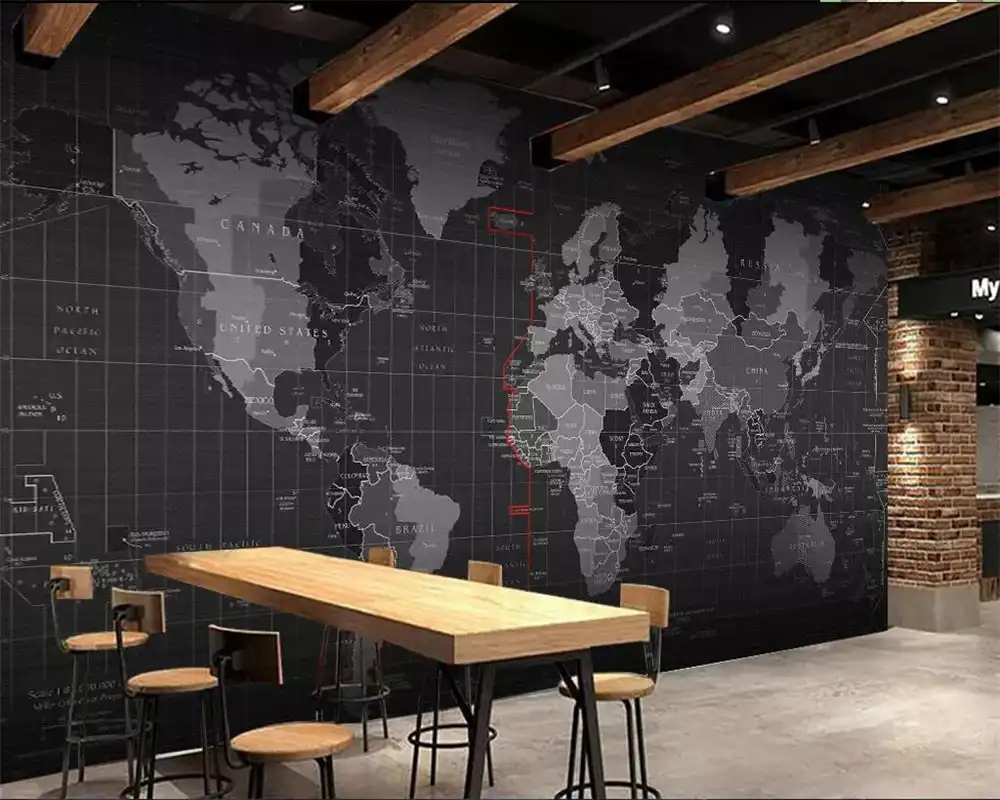 Afashiony Custom Wall Mural World Map Mural Restaurant Tea House
