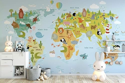 World Map Wallpaper Mural World Map Poster For Kids Room World