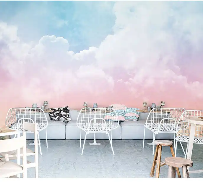 Pink Sky Cloud 3d Cartoon Ceiling Wallpaper Murals For Girls Room
