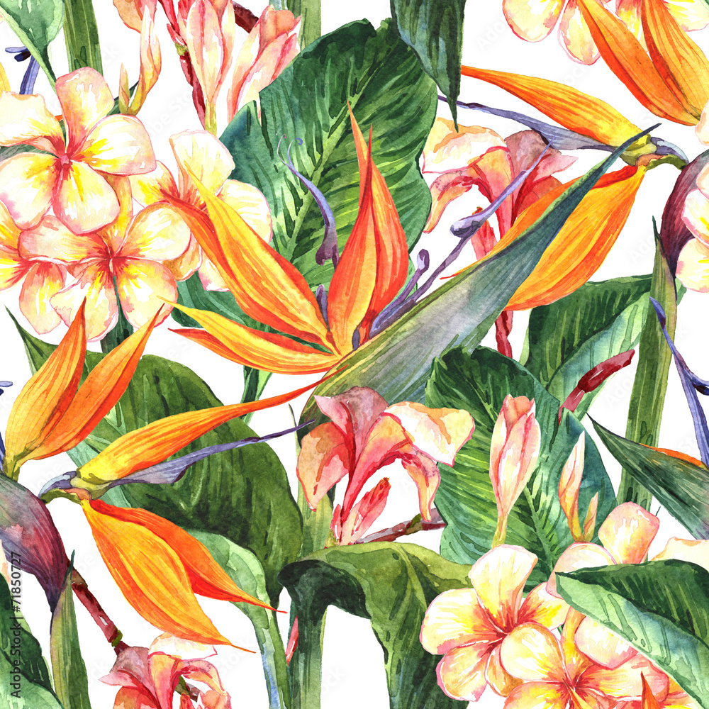 Tropical Seamless Pattern With Exotic Flowers Wall Mural