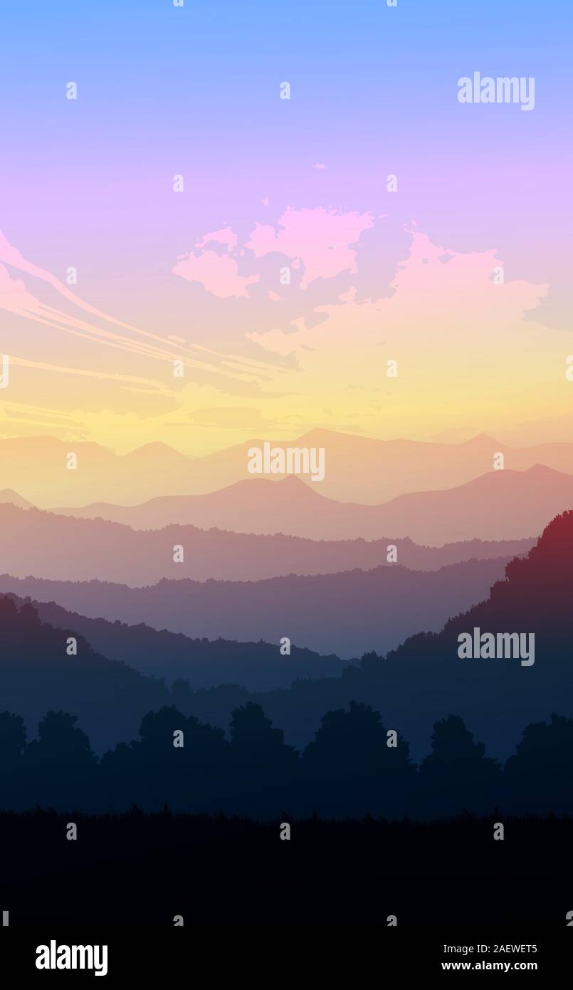 Natural Forest Trees Mountains Horizon Hills Sunrise And Sunset