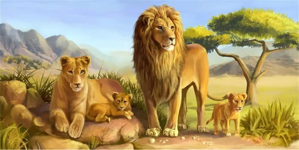 Lion King Grassland 3d Full Wall Mural Photo Wallpaper Printing