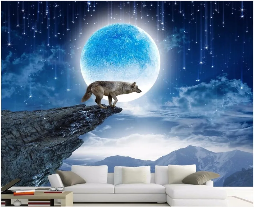 Custom Photo 3d Wallpaper Full Moon Night Mountain Moon Wolf Tv