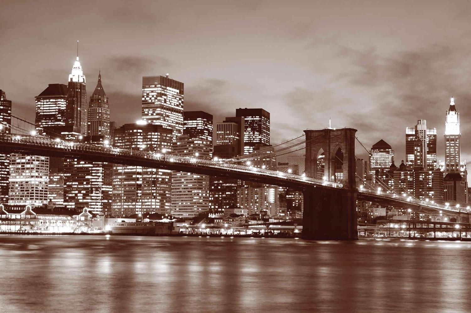Brooklyn Bridge And Nyc Skyline At Night Wallpaper Mural Murals
