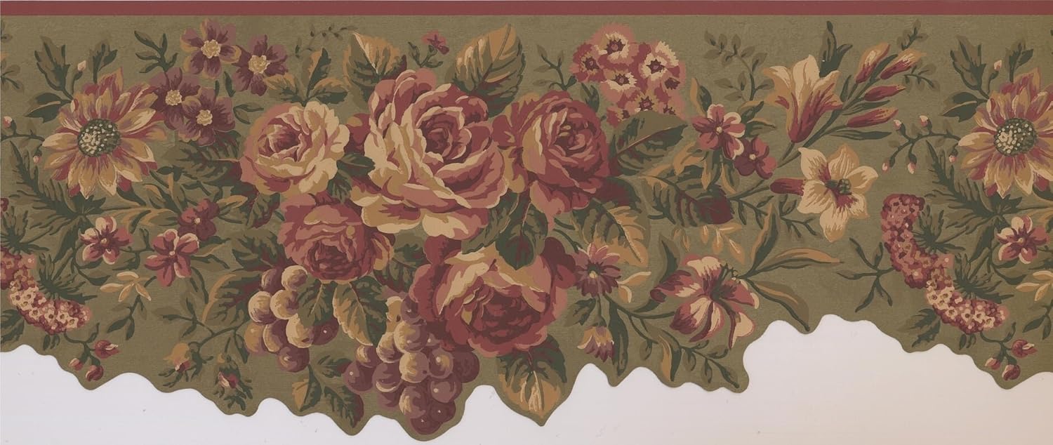 Cherry Red Flowers Peony Daisies Violet Grapes Sage Green