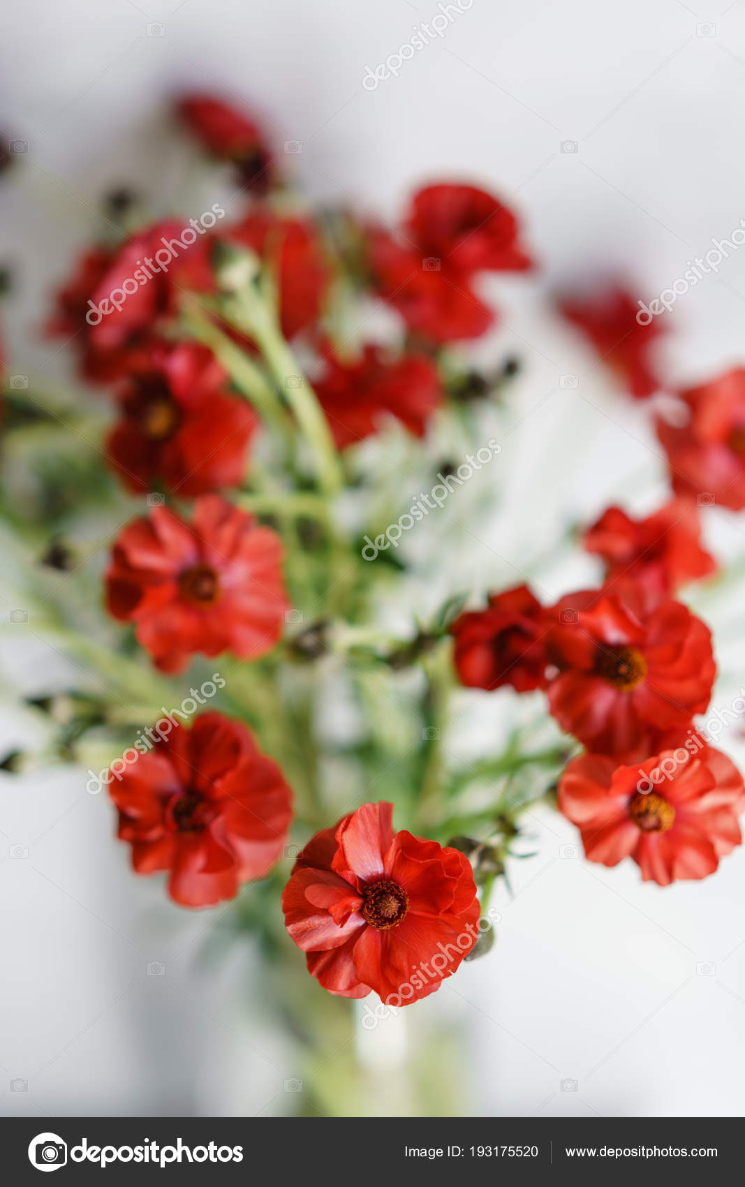 Beautiful Buttercups Bush Flowers In A Vase On A Table Bouquet