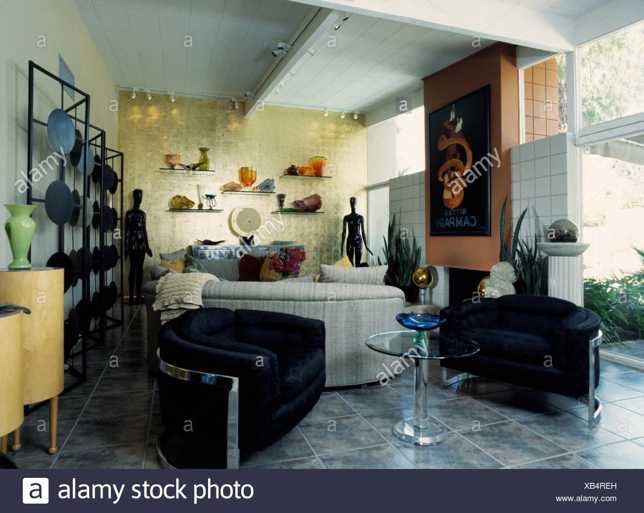 Black Armchairs And Glass Pedestal Table In Modern Living Room