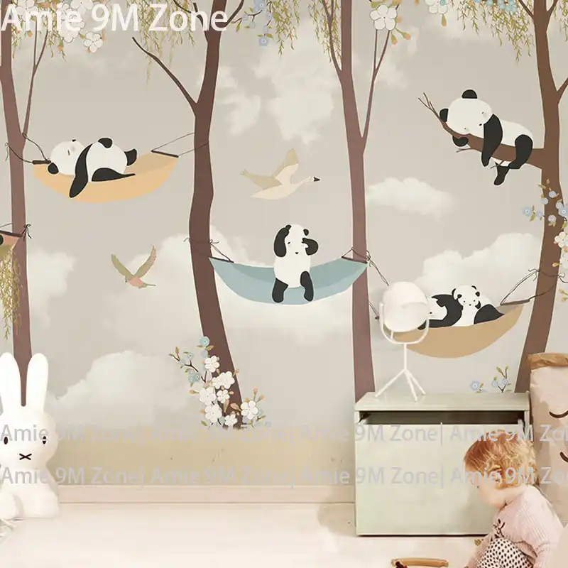 Tuya Art Wallpaper For Kid Room Cartoon Panda S Play Garden For Child S Room Mural Wallpapers Baby Room Wall Decor Matt Finish Art Wallpaper Wallpaper For Kidswallpapers For Aliexpress