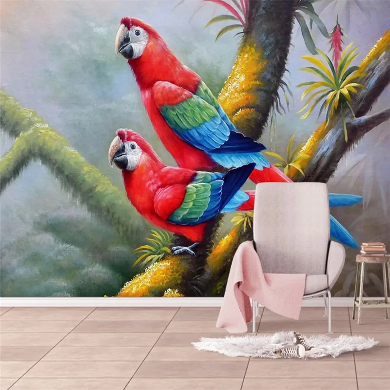 Middle Ages Hand Painted Tropical Forest Couple Color Parrots