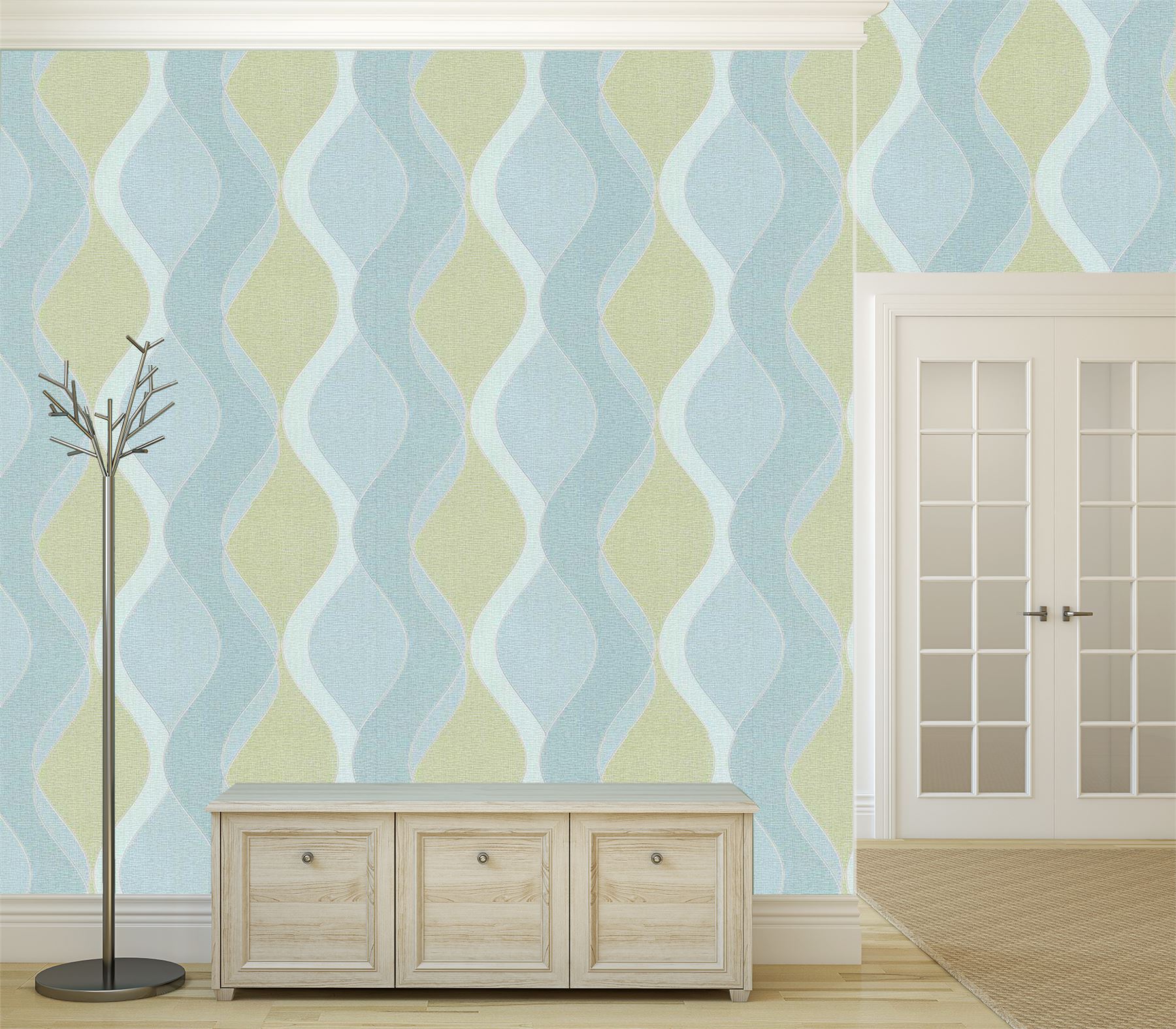 Vertical Wave Fleece Wallpaper Paste Wall Green Turquoise Light