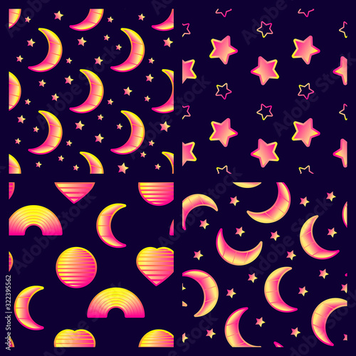Set Of 4 Mystical Seamless Patterns With Crescent Moons Hearts Rainbows And Sphere Shapes Futuristic Digital Vector Wallpapers Pastel Goth Aesthetics Buy This Stock Vector And Explore Similar Vectors At Adobe