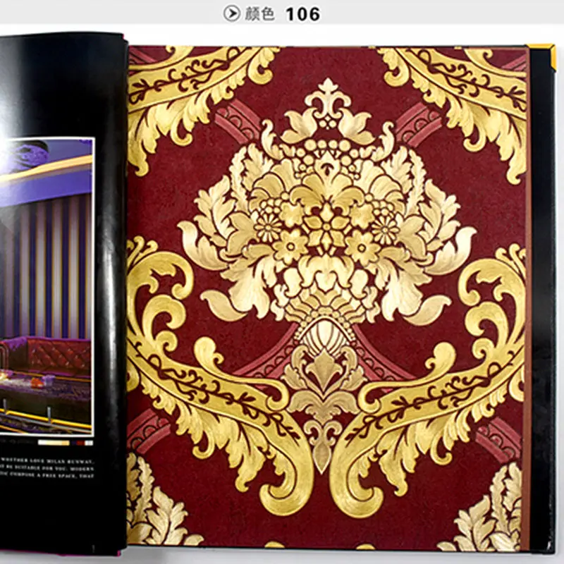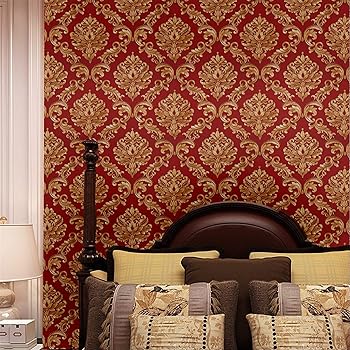Luxury Damask Vinyl Wallpaper Red Black Gold Pvc Wall Paper Roll