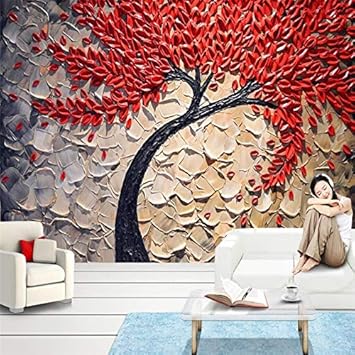 Xzcwwh Red Money Tree Oil Painting Three Dimensional Knife